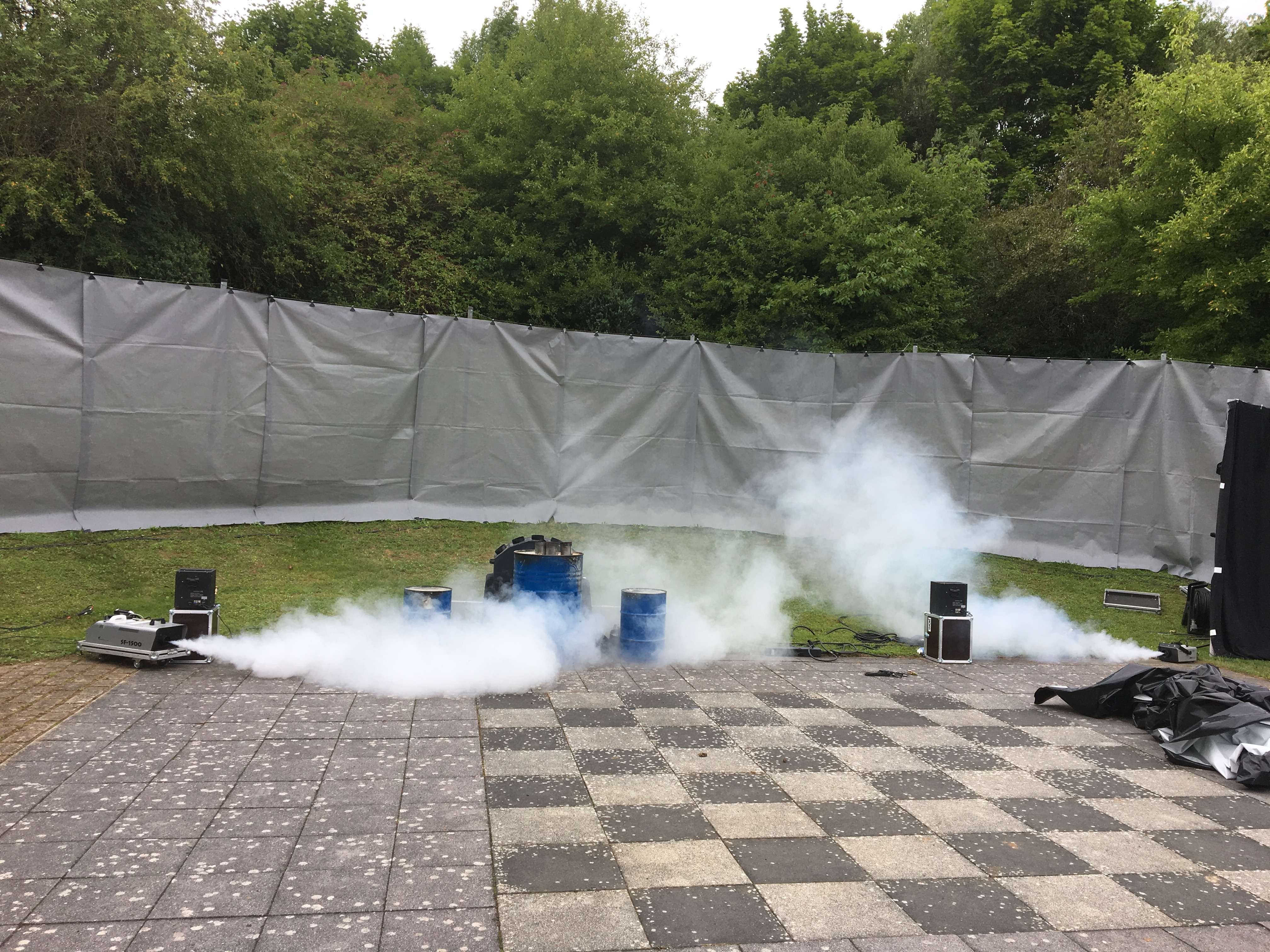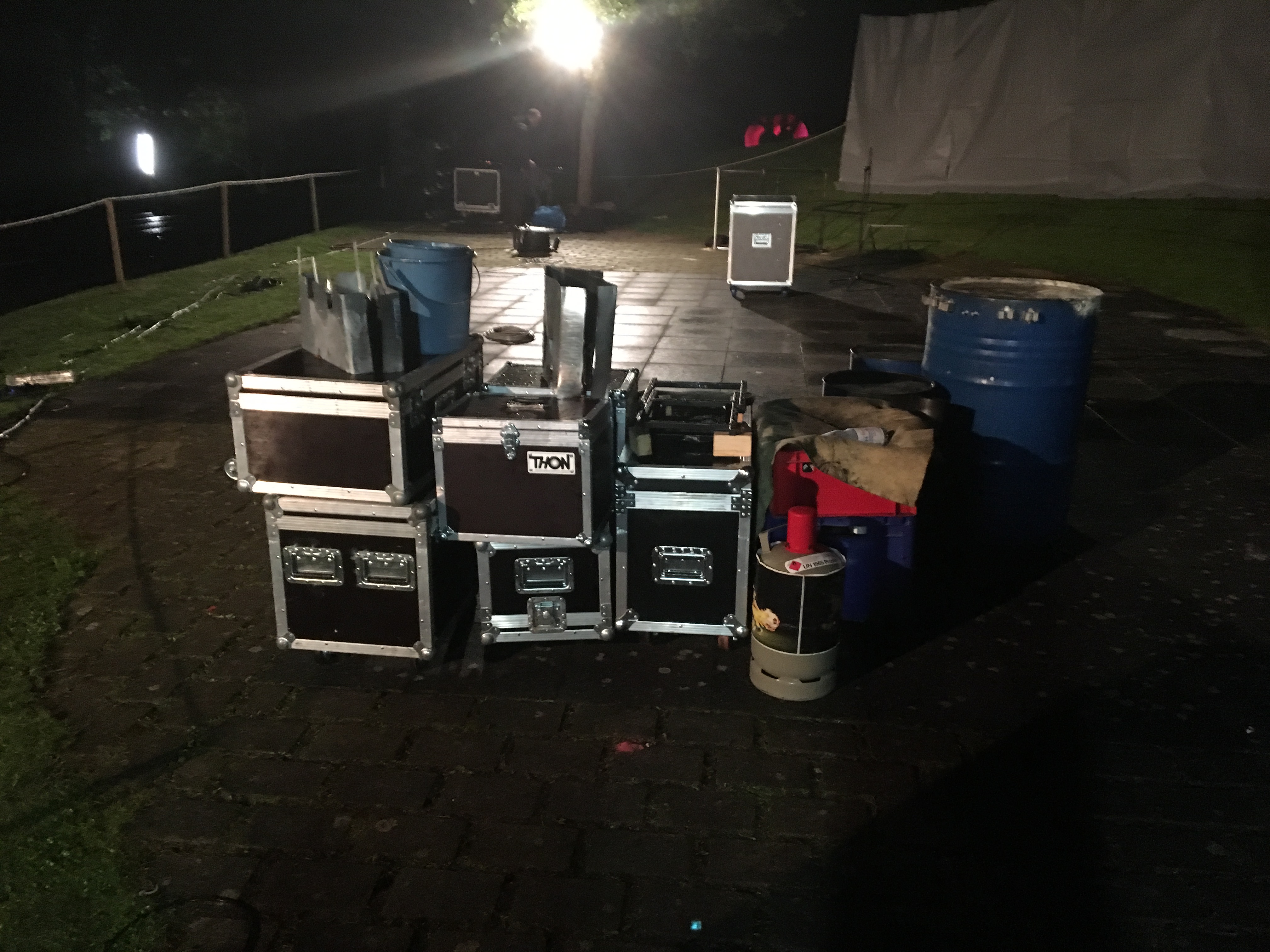 Die Vorbereitungen begannen bereits Stunden vor der Show. Scheinwerfer, Nebelmaschine, Flammenprojektoren und Bühnen-Dekoration wurden früh aufgebaut, alle Effekte getestet. Trotz kleiner technischer Herausforderungen funktionierte das neue Flammensystem mit bis zu elf Flammen einwandfrei während der Show. Die Möglichkeit, alles eigenständig und lösungsorientiert vorzubereiten, erlaubte es dem Team, sich ganz auf den Einlass und die Gäste zu konzentrieren.