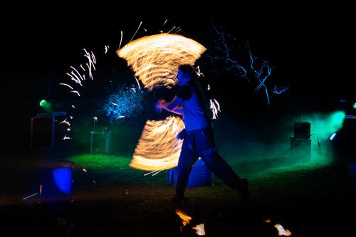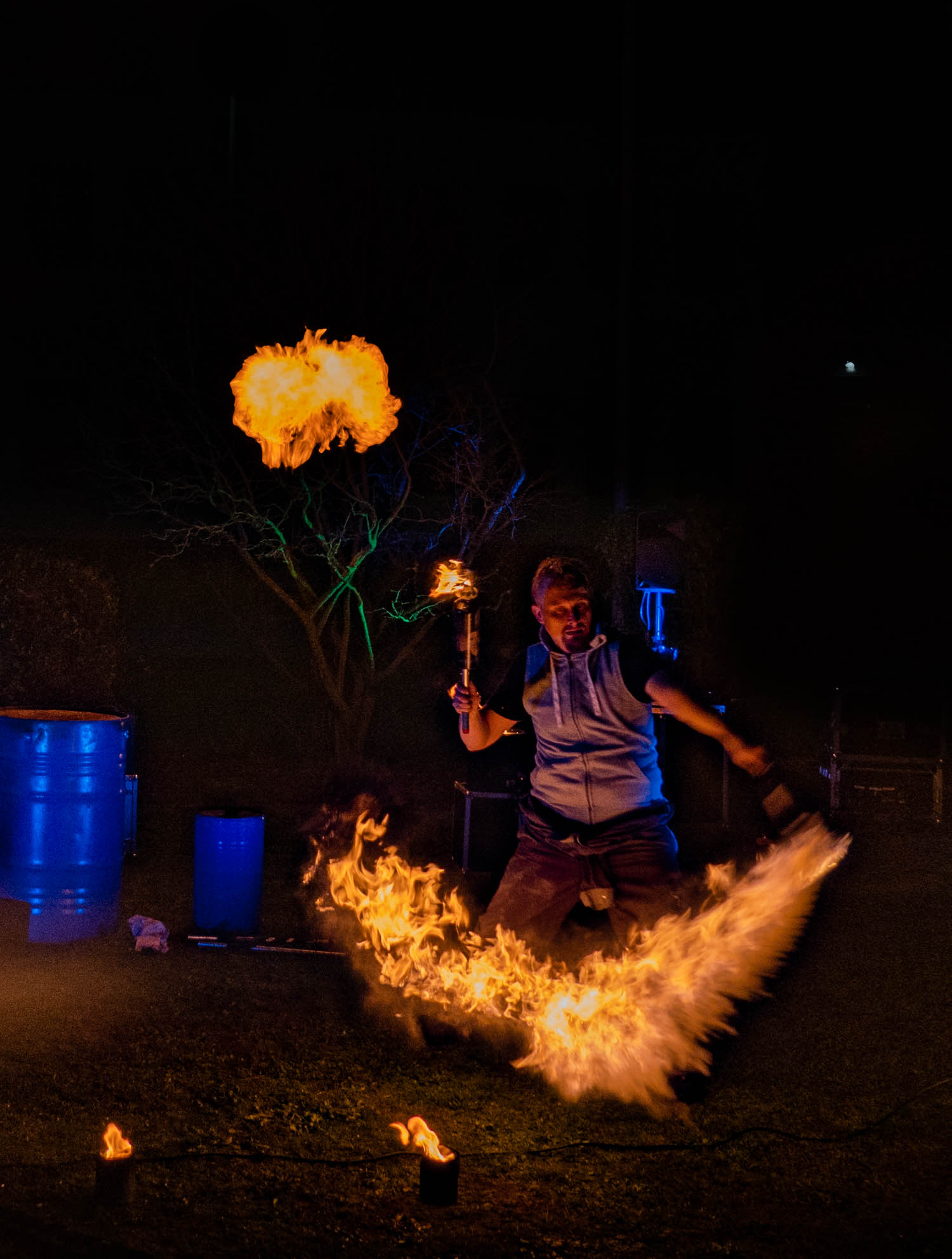 Ich hatte die Freude, die Weihnachtsfeier eines mittelständischen Unternehmens im Rhein-Main-Gebiet mit meinen Shows Light Up und Industrial Fire zu bereichern. Zwischen festlich geschmückten Buden und brennenden Feuerschalen entstand eine lebendige Bühne unter freiem Himmel. Trotz wechselhaften Wetters ließen sich die Gäste von Licht, Feuer und Funkenregen in den Bann ziehen.